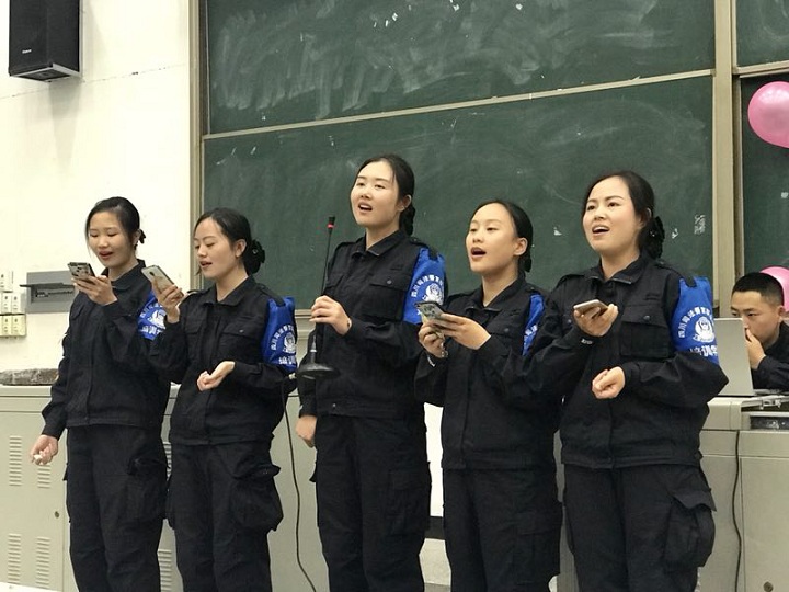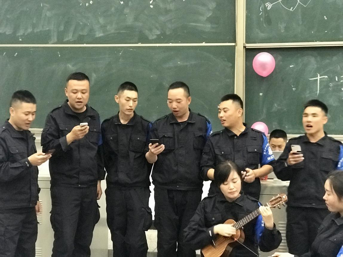 “和我在成都的街头走一走,直到所有的灯都熄灭了也不停留。”初冬的夜晚,在干净的校园里漫步,这深情如许的歌喉吸引人走进101教室。“有的爱像阳光倾落,边拥有边失去着”,有人缓缓倾诉,有人默契伴奏,一把造型非凡的尤克里里像是全场最闪亮的礼物。接着,一个姑娘跳起来民族舞蹈,作训服也掩盖不了那绝尘的气质,就如舞曲名里的荞麦花一样纯粹。驻足观赏,吸引人的是歌舞里透出的那抹历经岁月沉淀的光芒——11月7日晚上,新警培训十中队的全体学员和管理老师及小教员齐聚一堂,举行了一次非常成功的联谊晚会。