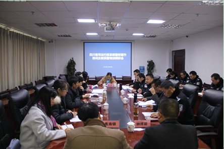为进一步做好全省司法行政系统警衔晋升培训工作,了解和掌握监狱、戒毒单位培训需求,提高培训工作质量和培训工作的针对性和实效性,2016年12月28至30日,由省司法厅政治部人事警务处、学院和雷马屏监狱组成的调研组一行十余人赴绵阳监狱、广元监狱、新华强戒所、川北监狱、巴中监狱开展干部培训工作调研。调研组成员主要包括省司法厅政治部人事警务处副处长周宇、人事警务处调研员王晓玲、学院培训处处长车宁荞和雷马屏监狱培训处主任赵静等。