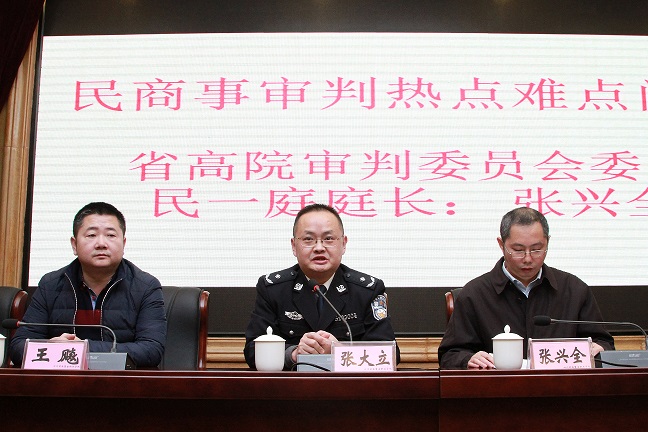 开班仪式后,四川省高级人民法院审委会委员、民一庭庭长张兴全为培训班作了题为“民商事审判热点难点问题”的专题讲座。张庭长在三个小时的授课过程中,向大家介绍了第八次全国法院民事商事审判工作会议召开的背景及历史意义,并且从“民事审判工作总体要求”、“关于婚姻家庭纠纷案件的审理”、“关于侵权纠纷案件的审理”等纪要所囊括的十个方面详细深入地解读了其精神实质。参训学员更加深入了解了民商案件的审判要求和特点,对代理此类案件更加明确了方向。