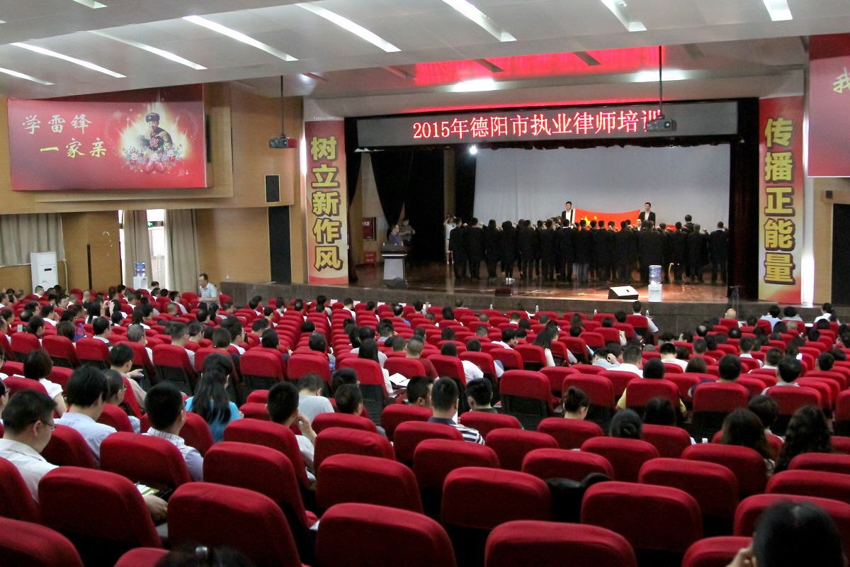 2015年5月12日,我院联合德阳市律师协会共同举办的“德阳市2015年度全市执业律师培训”集中全市543名律师,在我院北校报告厅举办。德阳市律师协会副会长胡冬林、秘书长蔡兵、德阳市司法局局长陈春平、机关党委书记廖德智出席培训活动。