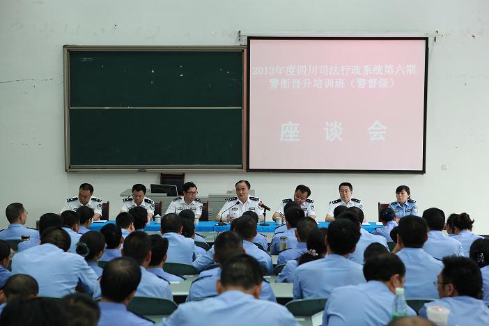 2013年5月25日下午,四川省司法厅厅长李仲彬一行来到四川司法警官职业学院,看望慰问本年度第六期司法行政系统警衔晋升培训班全体学员,并与大家进行了面对面交流座谈。