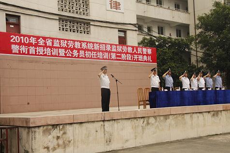 2011年7月27日上午,2010年全省新招录监狱劳教人民警察警衔首授培训暨公务员初任培训(第二阶段)开班典礼在我校南校区操场隆重举行。出席开班典礼的领导有:省司法厅党委委员、政治部主任沈华伦,四川司法警官职业学院党委书记何华,省司法厅政治部人事处处长许文昌、副处长周兵,四川司法警官职业学院副院长张大立、纪委书记刘晋川、政治部主任李灿,培训班大队长、中队长等管理人员及810名参训学员参加了开班典礼。开班典礼由四川司法警官职业学院党委副书记刘志刚主持。